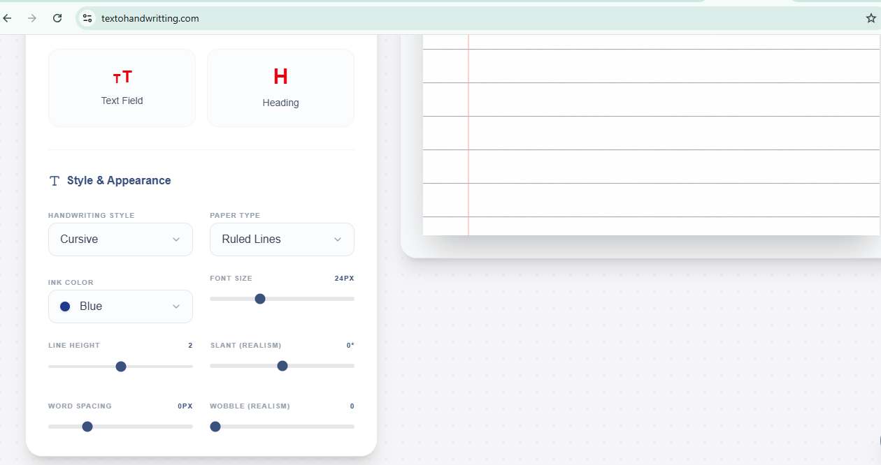 - Customize if you want – adjust font size, color (blue, black, red, green, purple), background (plain, lined, grid, vintage, floral), and effects like wobble and slant